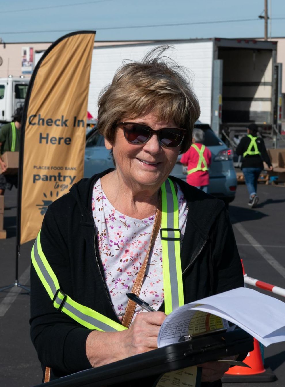 I searched for the “right” volunteer opportunity for me. Nothing I tried seemed to give me the joy/satisfaction that I was looking for. Here’s the scene… Friday night, with the IPad searching for something, when I saw the offer to volunteer at the Placer Food Bank. I figured I would give it a try. It was the perfect fit for me! Now I look forward to my days of bagging vegetables, sorting, salvage and even those Friday cleaning days, but the thing that warms my heart the most are the distribution days. To see the end process of all the good the food bank does. Each and every thank you, so happy you volunteers are here, and God bless you, reaffirms I made the right decision.