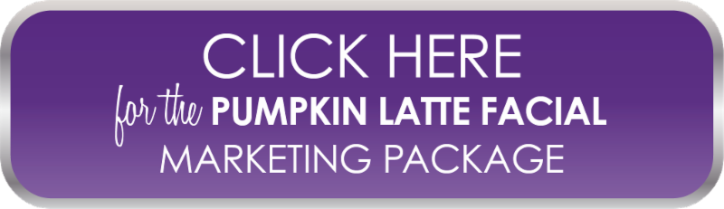 Pumpkin Latte Facial Package includes a protocol and two 4"x 6" display photos, all in an ivory organza bag.