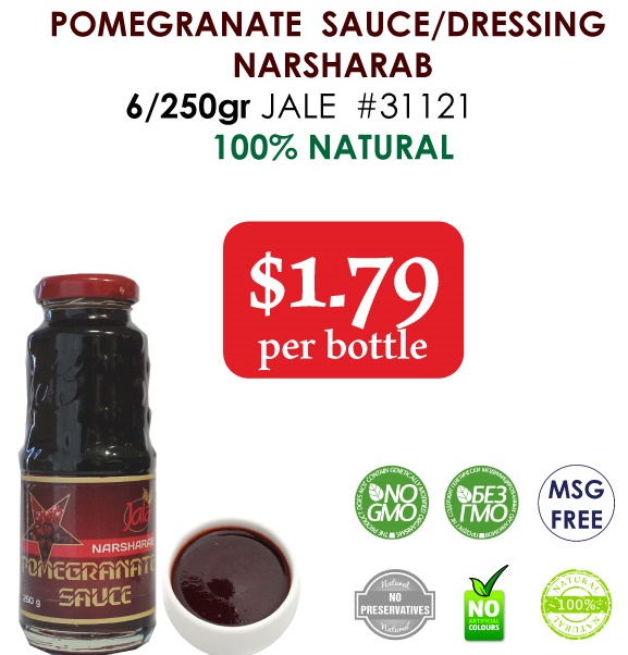 Although Narsharab is considered to be best sauce for Seafood but also Lamb, chicken and duck all go really well with pomegranate molasses. Make a marinade with some olive oil, pomegranate molasses, yoghurt, garlic, oregano and salt and pepper and marinade your chosen meat for a few hours before sticking it under the grill or on a BBQ.
