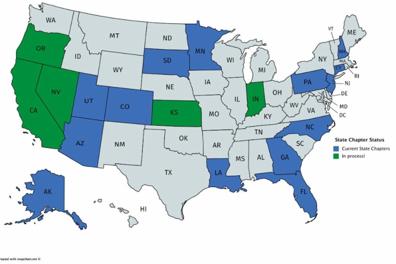 is thriving with 14 active chapters and more on the way! The most recent additions were added in July: Colorado and South Dakota. The