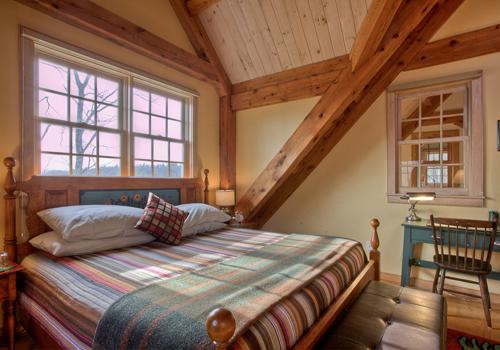 The Frog Meadow Suite has vaulted beamed ceilings and wonderful southeast views of the grounds and surrounding hills. A mini-fridge and quiet central air conditioning round out the deluxe amenities that make the Frog Meadow Suite the “best room in the house”.