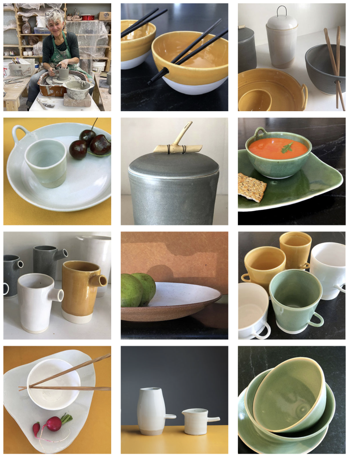 Carol's functional pottery has been described as calming and quirky at the same time. With signature coil and wire handles, each piece has a distinctive personality. Carol's graphic design background, and her love of simplicity in art and in life inspires all of her work.