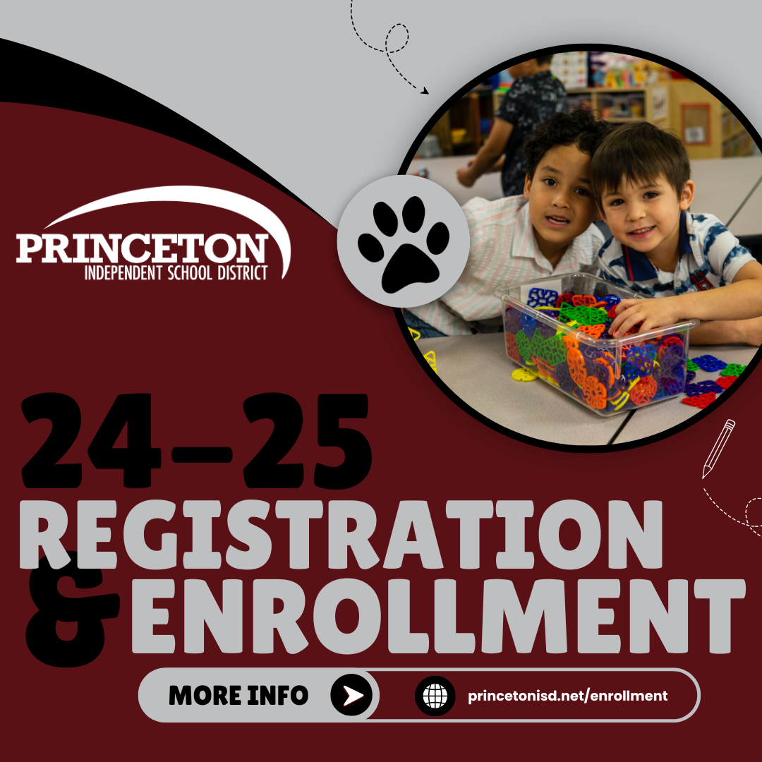 Enrollment and registration for new and returning students is now open, and every student must complete the registration process. Existing student information can be completed online through the Infinite Campus parent portal. New students need to enroll in person at any campus. For more information, visit princetonisd.net/enrollment.