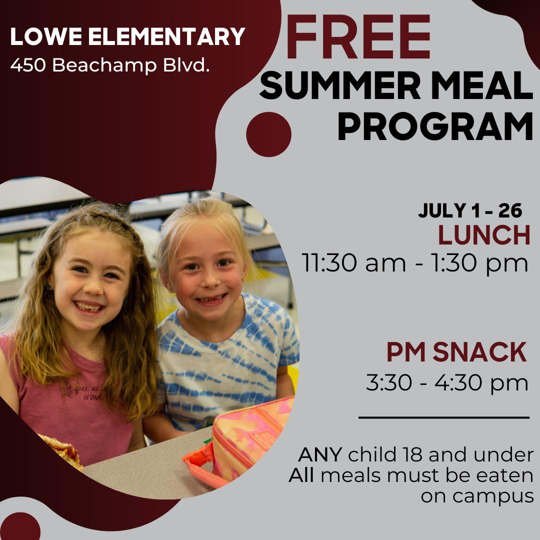 Summer meals are being served at Lowe until July 26, with serving times below.