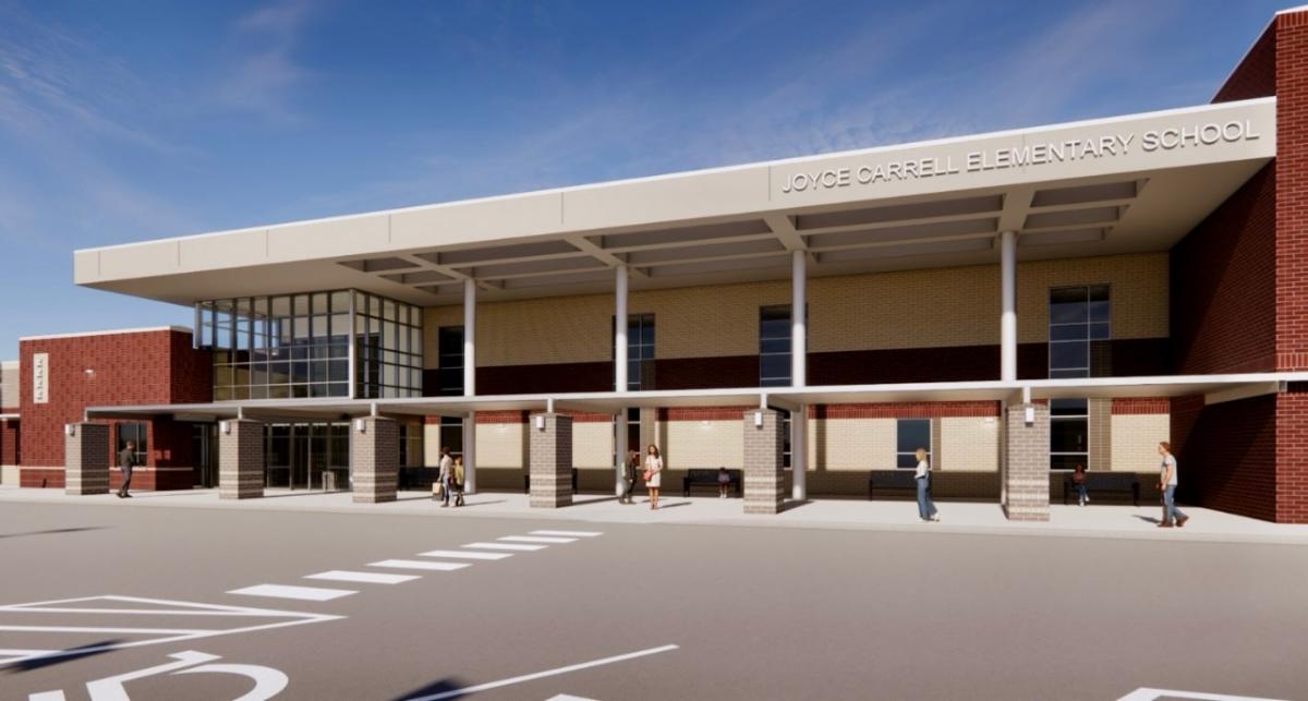 Joyce Carrell Elementary School will be the district's ninth elementary school. The facility will be located along the future extension of Cypress Bend Parkway situated in the area west of Beauchamp Boulevard, north of Myrick Lane and east of Simpson Road.