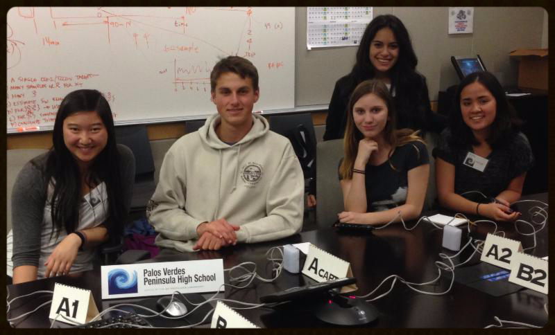 On Saturday, February 28, 2015, The Pen OCEAN SCIENCE BOWL TEAM participated in the annual competition at Jet Propulsion Laboratory in Pasadena. The team was led by co-presidents Michael McFarland & Regina Lee. Other members included Jillian Ambler, Krislyn Jobes, and Valeria Lazaro. The National Ocean Sciences Bowl (NOSB) competition is a nationally recognized and highly acclaimed high school academic competition that provides a forum for talented students to test their knowledge of the marine sciences. The competition encourages students to learn more about the oceans and to raise public understanding of the national investment in ocean-related research. About 2,000 students from more than 300 high schools nationwide participate in this academic competition every year, answering questions about biology, chemistry, geology and physics of the oceans, as well as navigation, geography and related history and literature. Our school's team this year had all brand new members. The team learned much this year and is preparing for next year's competition. Our team members were also able to interact with the JPL's scientists and staff. The whole team is very excited to be coming back next year!