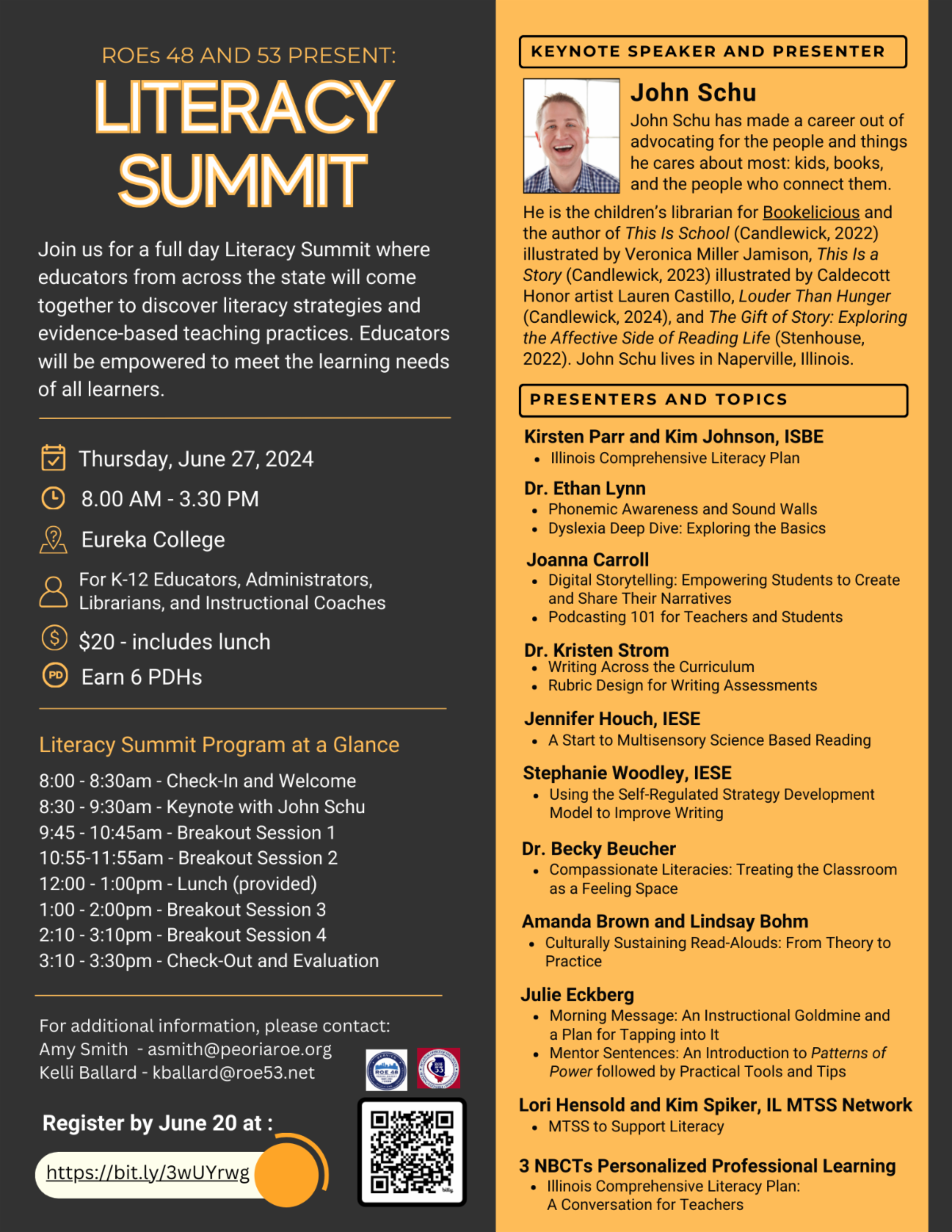 Join us for a full day Literacy Summit where educators from across the state will come together to discover literacy strategies and evidence-based teaching practices. Educators will be empowered to meet the learning needs of all learners.