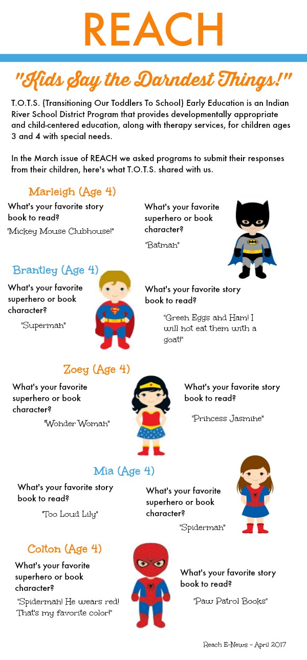In the March issue of REACH we asked programs to submit their responses from their children to two of the following questions...here's what T.O.T.S shared with us: