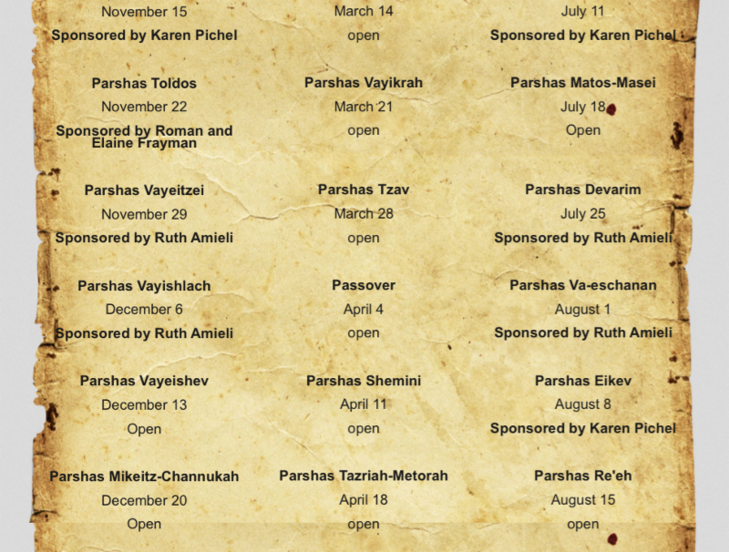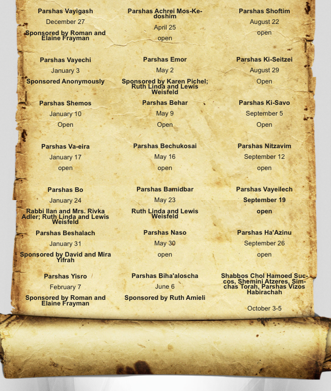 This week's holiday/parsha e-mail has been sponsored by Rochel Manses in loving memory of Rochel's sister, Leah bat Hnena, on her Yahrtzeit which is on this Shabbos, the 22nd of Nissan.