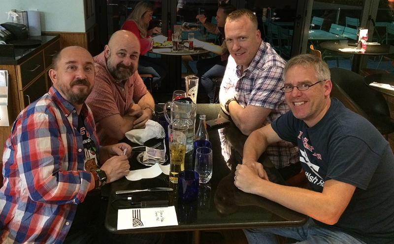 Post show pizza and drinks with the Revolution guys, from left to right: Mike Hale, Ben Ando, Paul Churchill and me, gurning.