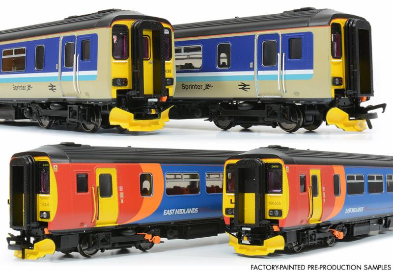 Class 156s, and very tasty they looked too in the classic Provincial and colourful East Midlands Trains paint schemes. These models were completed without the benefit of final paint masks and much of the tampo printing was done by eye rather than production jigs. Their fine appearance is a testament to the quality of the masters in the paint and printing rooms.