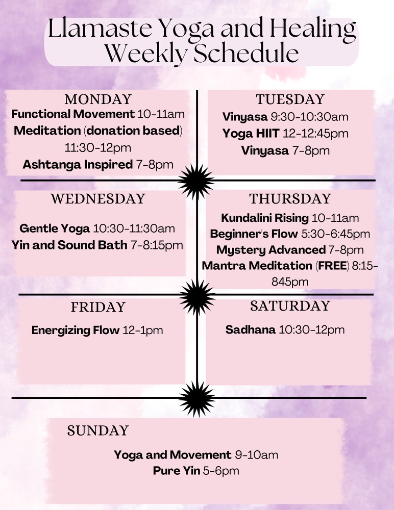 Follow us on Facebook and Instagram to stay connected: Llamaste Yoga and Healing