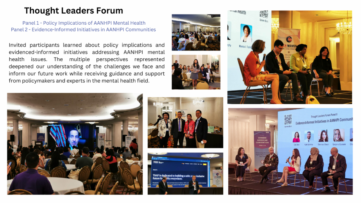 The Summit Plenary Session was titled "Uniting Diverse Stakeholders For Mental Health Equity". North Caroline State Representative Maria Cervania opened the session with an inspiring and thought-provoking speech, connecting her personal experiences growing up as an AAPI youth in America navigating family and cultural expectations, her training as a biologist and epidemiologist, to her career as a public servant in increasingly important roles, and her steadfast support and advocacy for AAPI community's health and mental health needs. SAMHSA Office of Behavioral Health Equity Deputy Director Tenly Biggs, UCA WAVES Executive Director Lily Chen, and Harvard Medical School Professor and a leading researcher on AAPI youth mental health Dr. Cindy H. Liu and other panelists discussed latest developments in their areas and pledged to collaborate with all sectors to advance new strategies to improve AANHPI mental health.