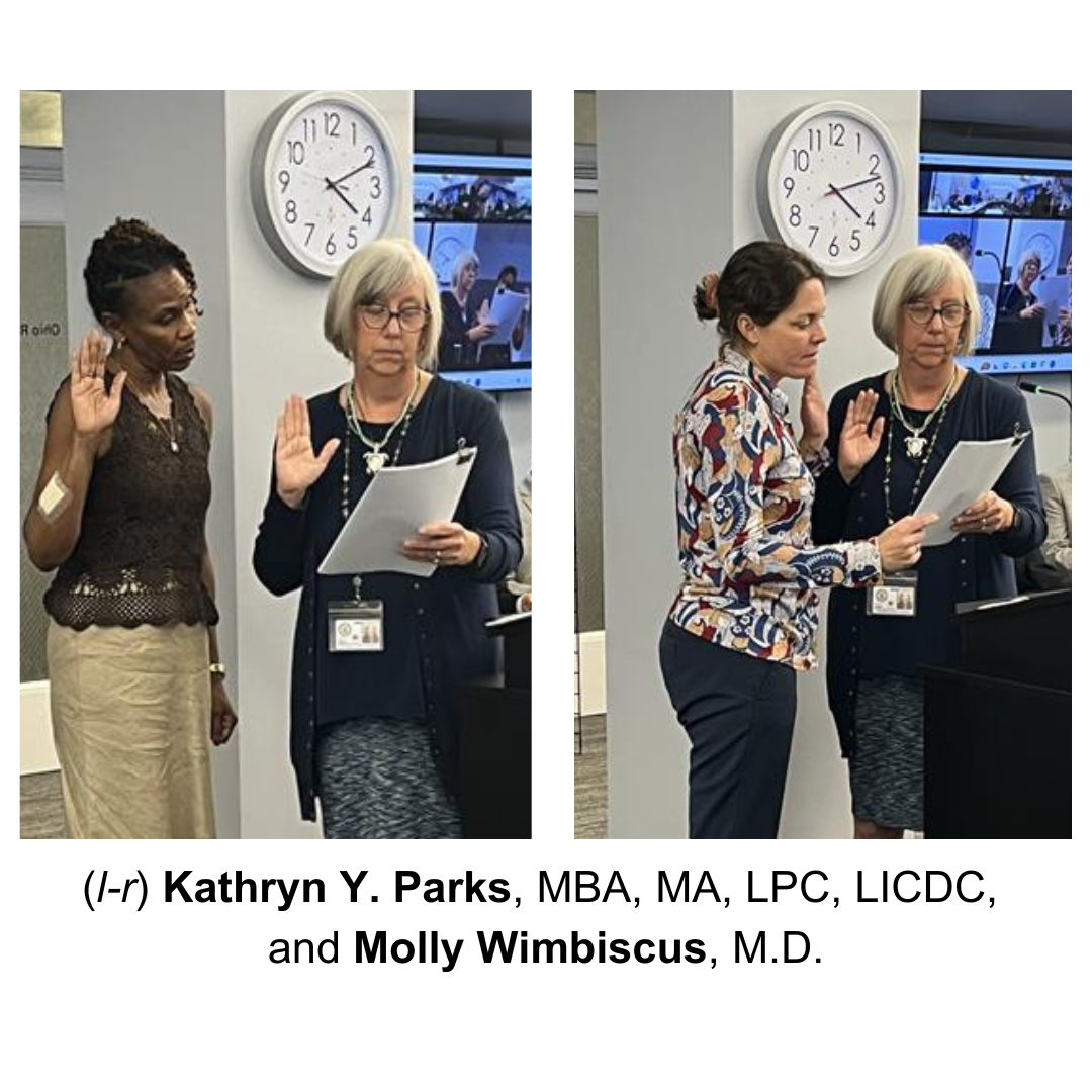 Molly Wimbiscus, M.D., was also sworn in at the General Board Meeting. Dr. Wimbiscus is a Child and Adolescent Psychiatrist at Cleveland Clinic since 2011; Founder and Director of School Mental Health Program since 2019; Program Director of Child and Adolescent Psychiatry Fellowship from 2014-2018 and 2023-present; Assistant Professor at Cleveland Clinic Lerner College of Medicine, Case Western Reserve University since 2014; and Child Psychiatrist at Neighborhood Family Practice since 2016. She is actively involved in local and national professional societies and has served as a community leader or professional advisor in multiple organizations. Her scholarly work is in school mental health, youth development and identity, collaborative care and preventive psychiatric care.