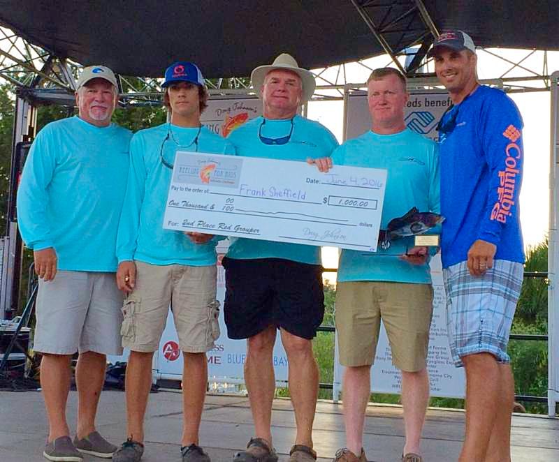 Terry Gaines, Kanler Vann, Dean Baker, and Frank Sheffield, pictured with Doug Johnson, received second place red grouper and more!