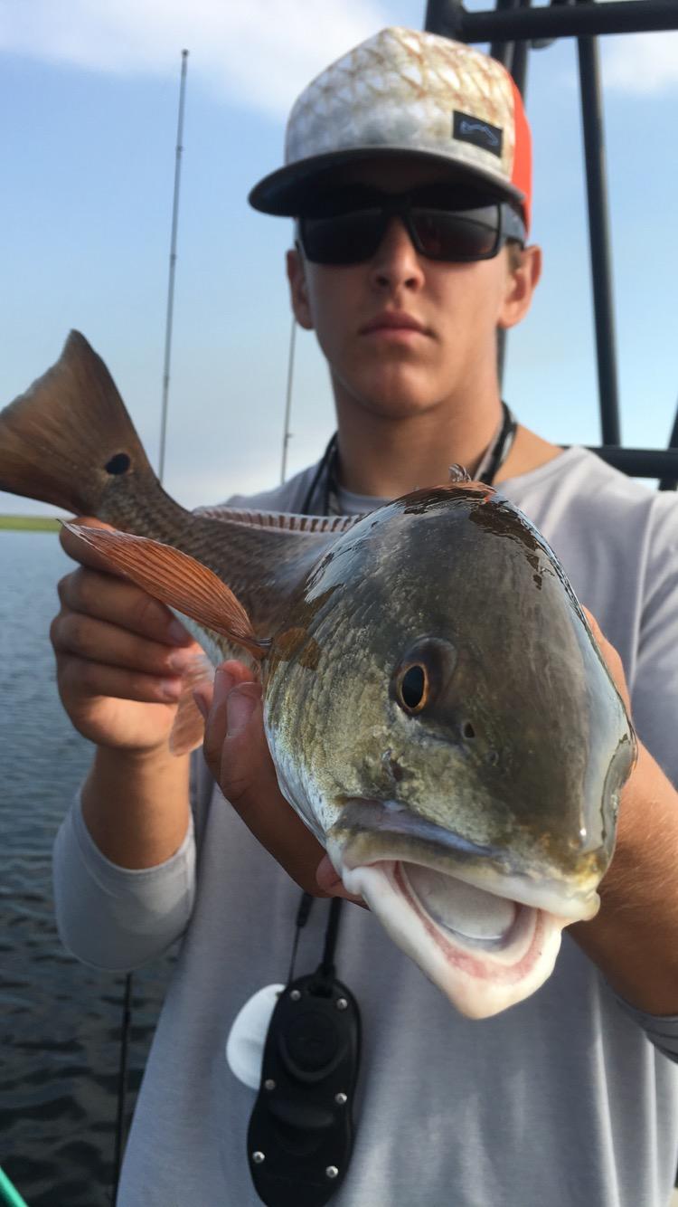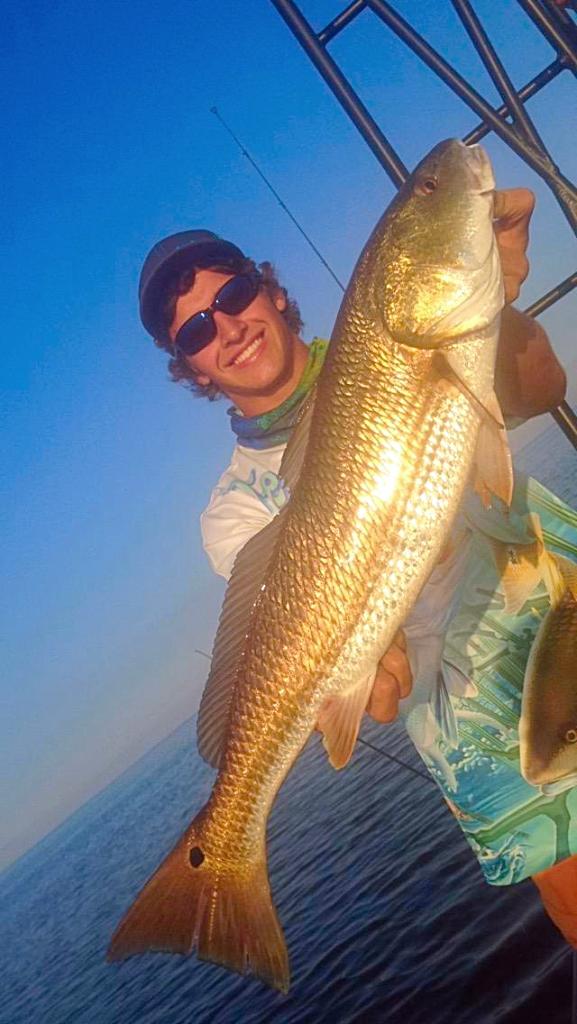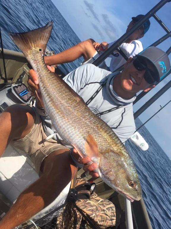 Luke Matthews showing off where the redfish are biting!... Their mouths!