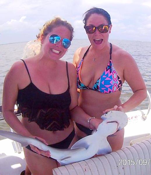 Candace Bingamon and Shelby Burgoon from Ocala, FL, caught this bonnet shark on squid while fishing off Sea Hag Marina's rental boat the "Coral Skull."