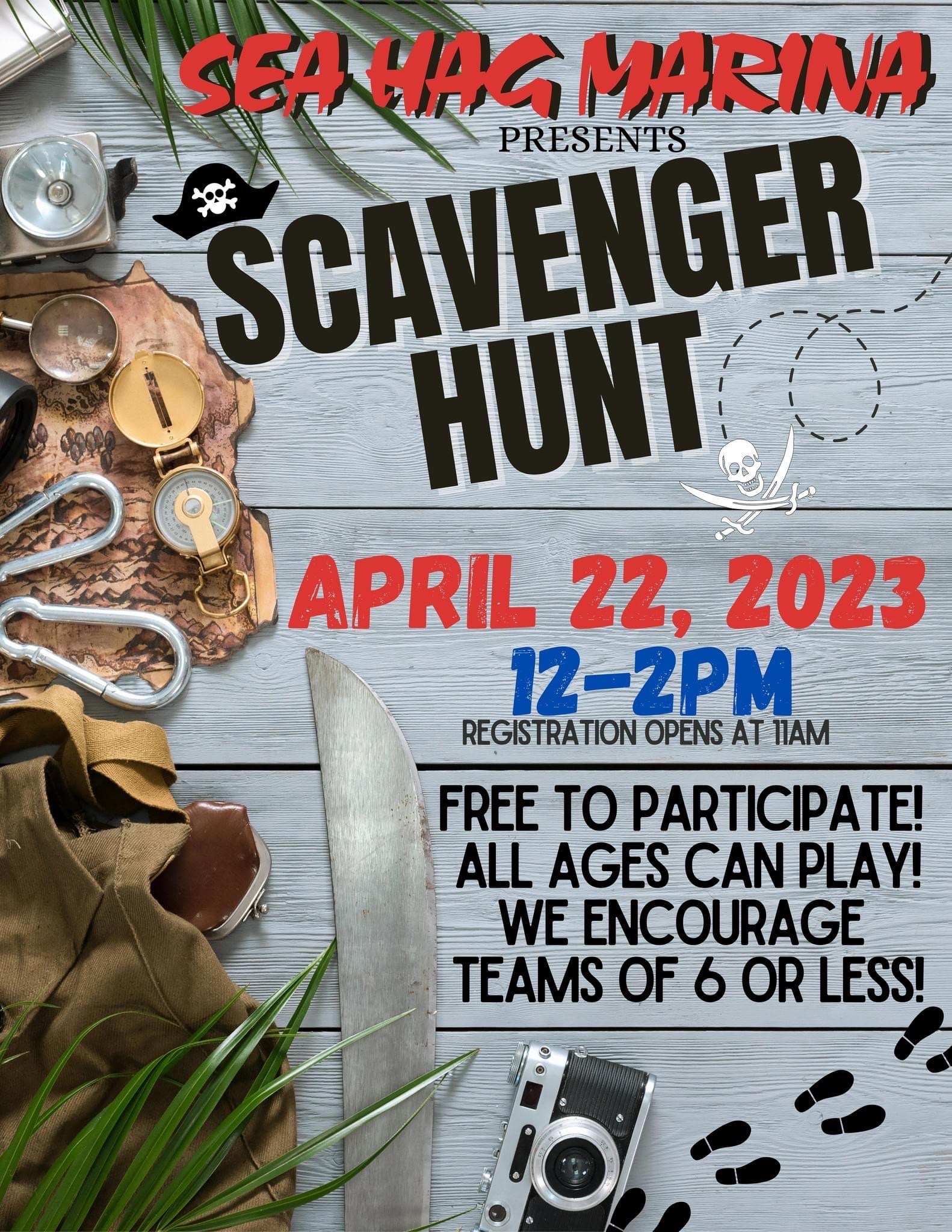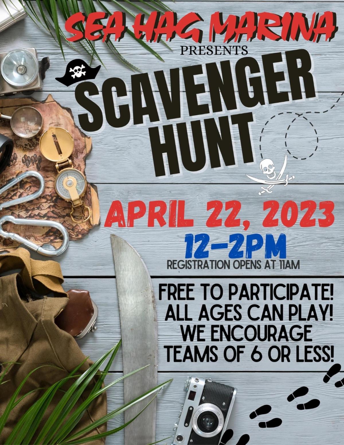 THIS WEEKEND! We are doing something new & fun at the Sea Hag on April 22nd! A Scavenger Hunt! Join us at 12pm, Saturday, April 22nd! Free to participate!