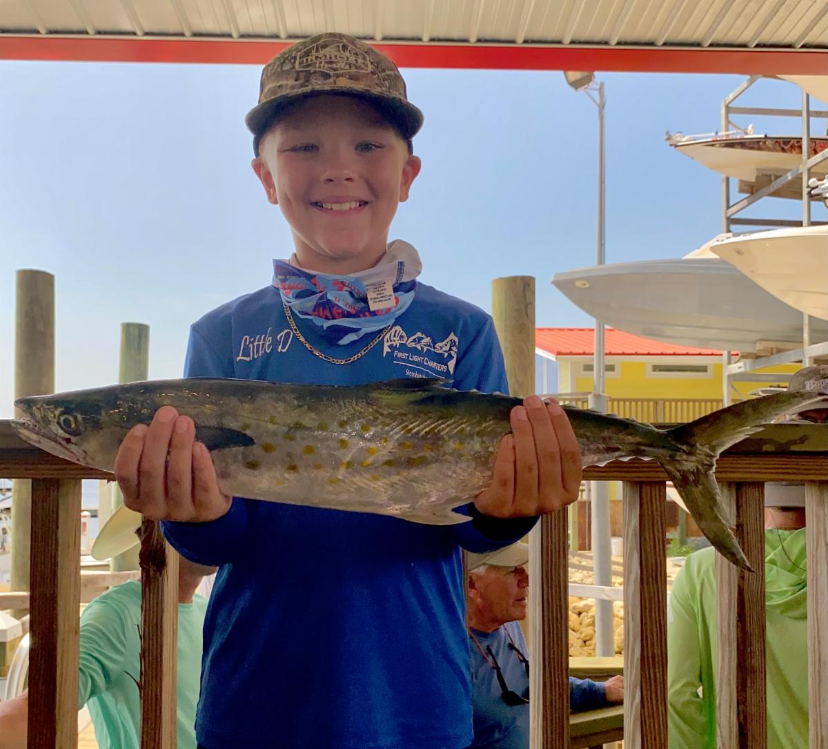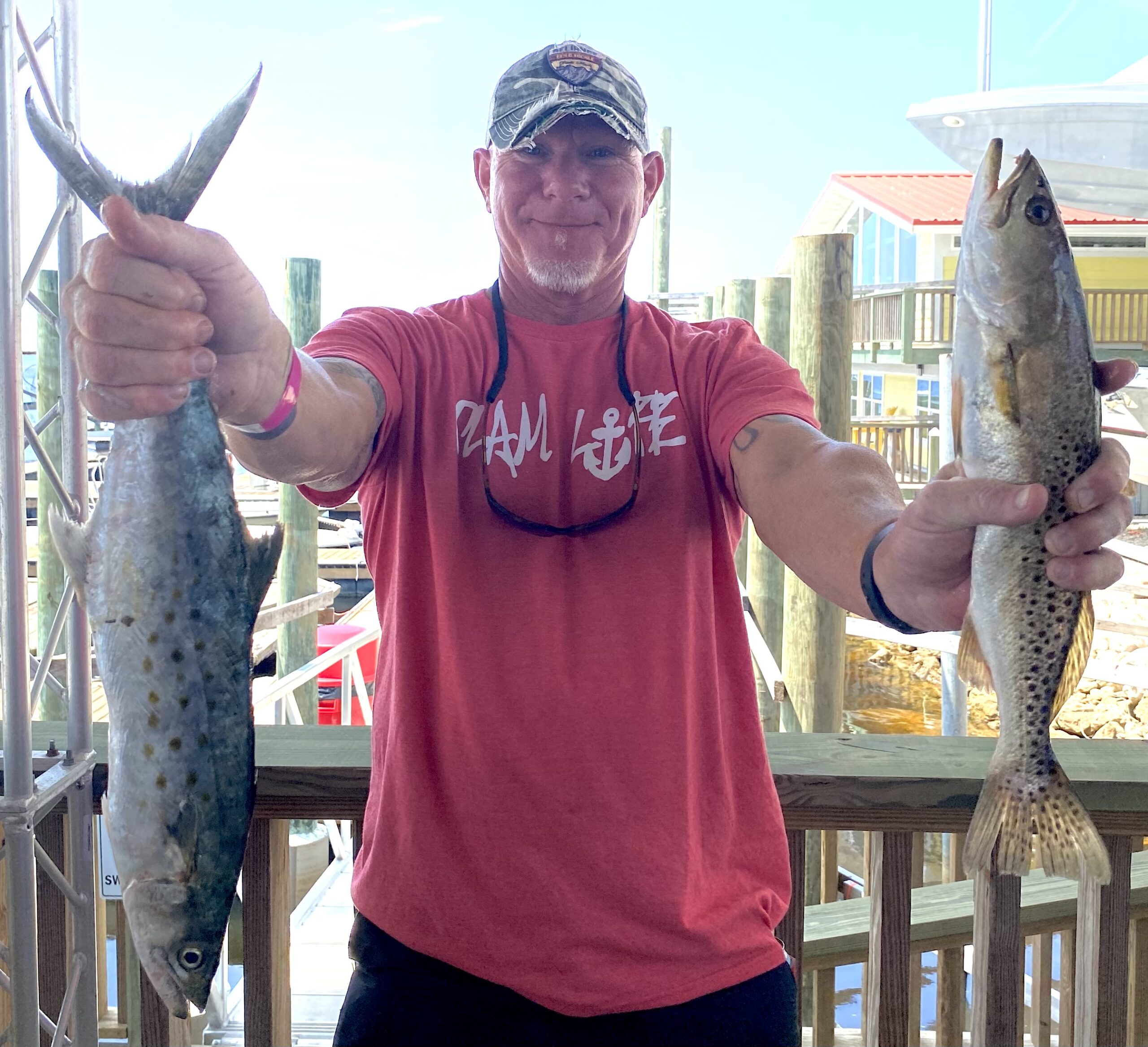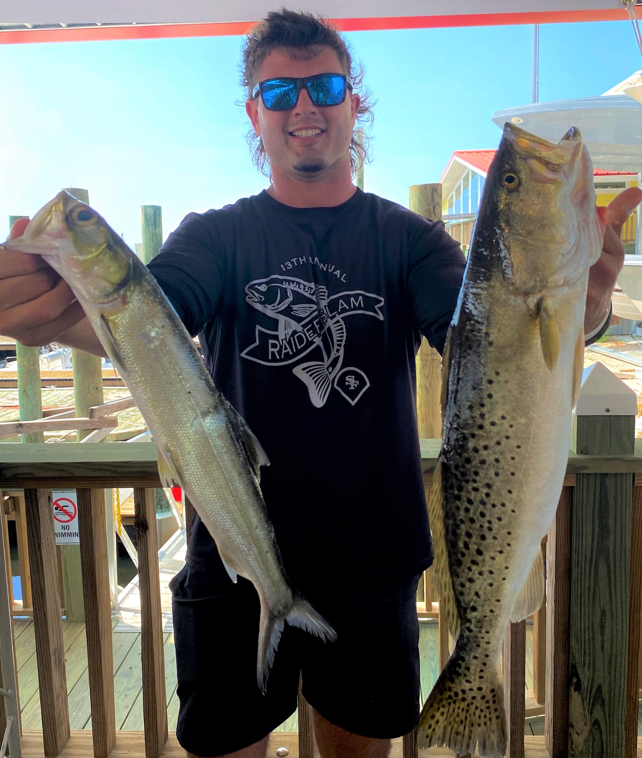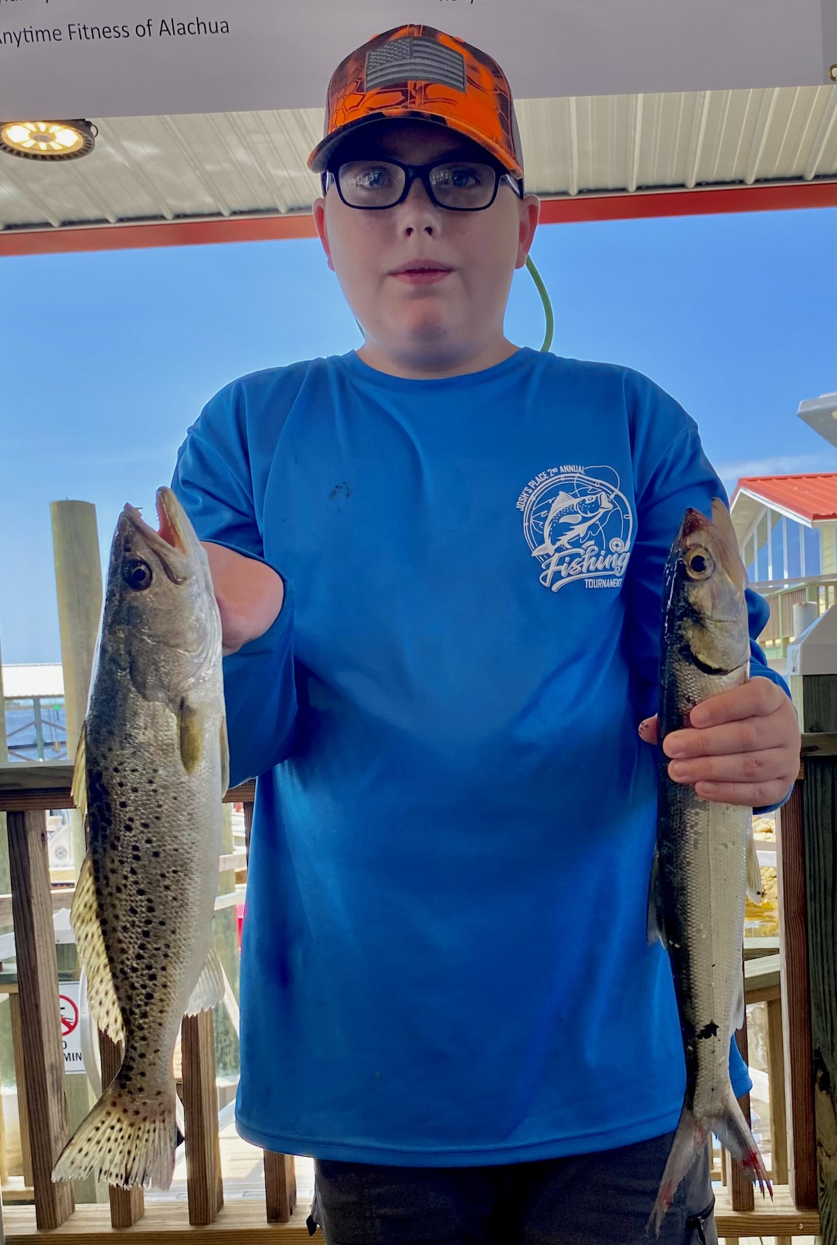 | Corbin Allen won a spot in the Youth Category with his trout & ladyfish. | Chad Griffin weighed in a nice redfish. | Bart Bryant is holding up a couple nice fish. | |