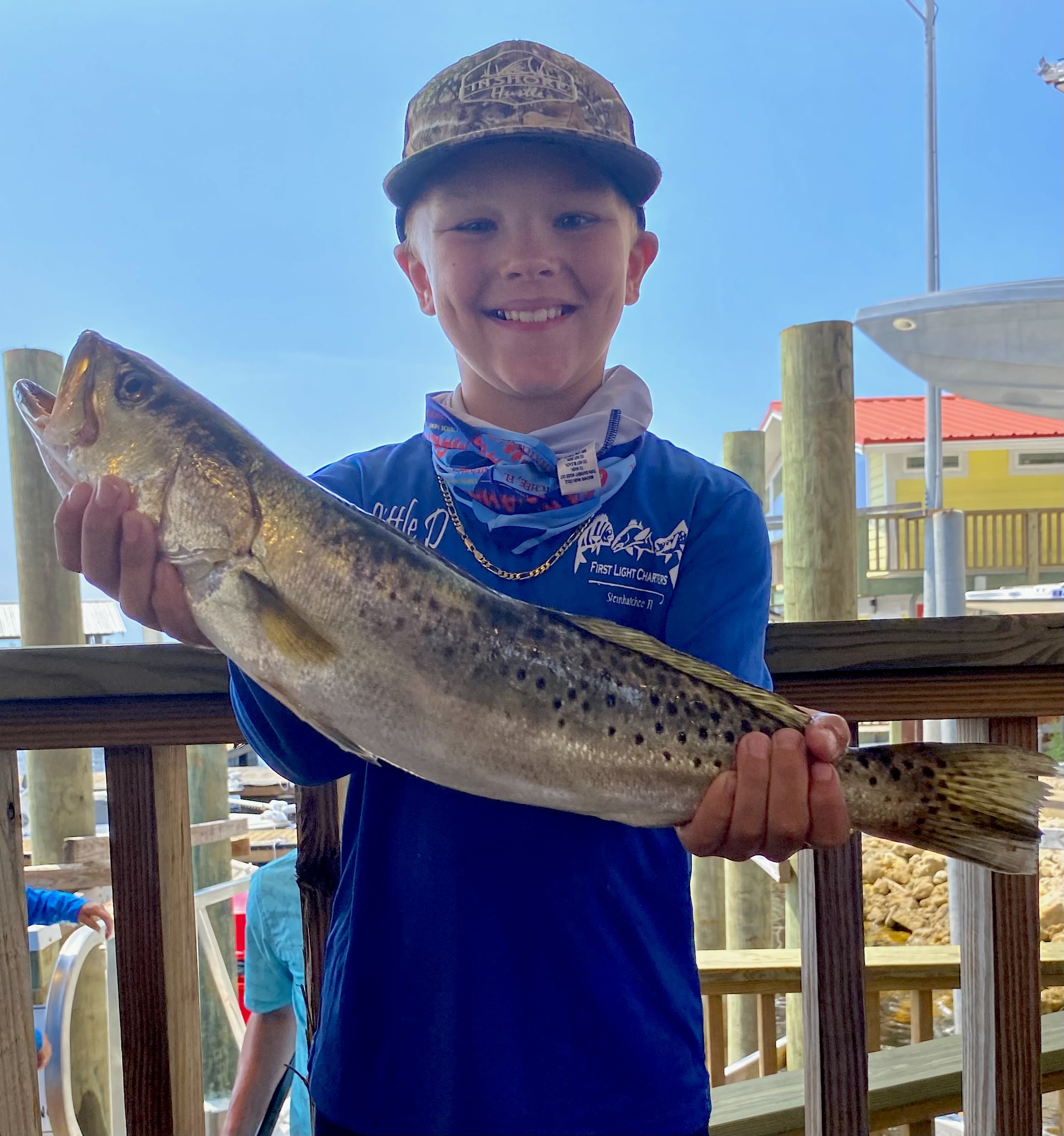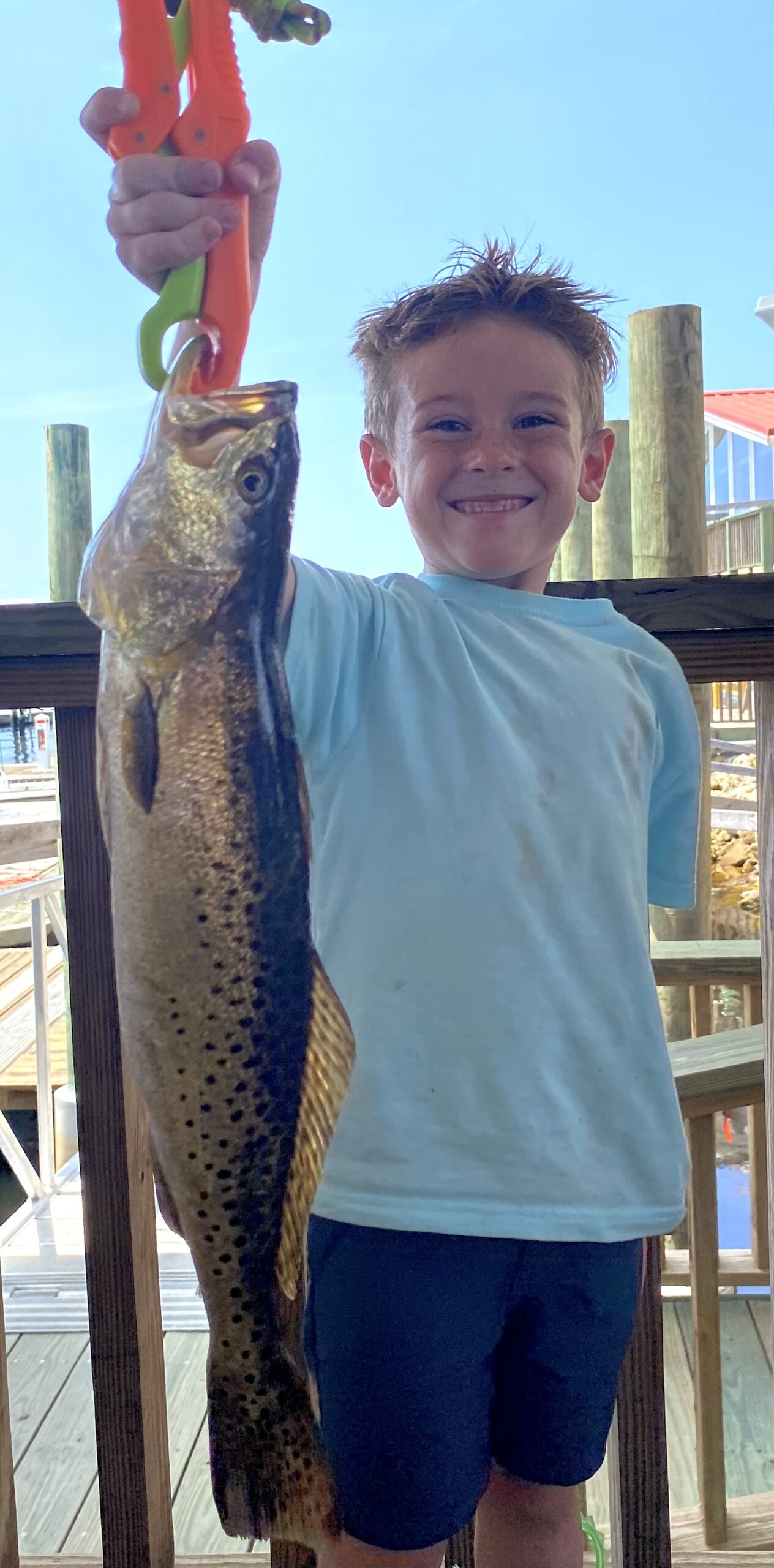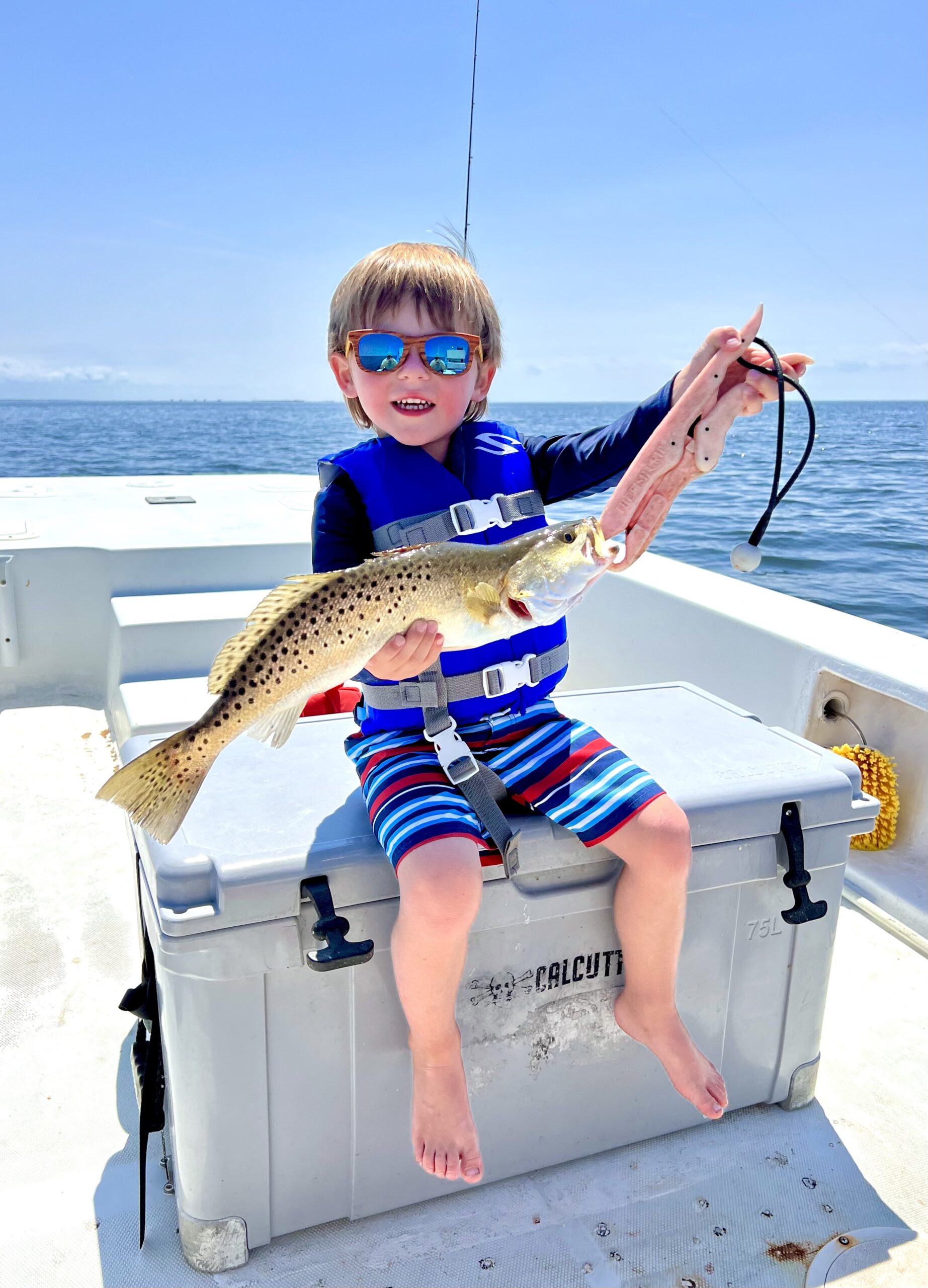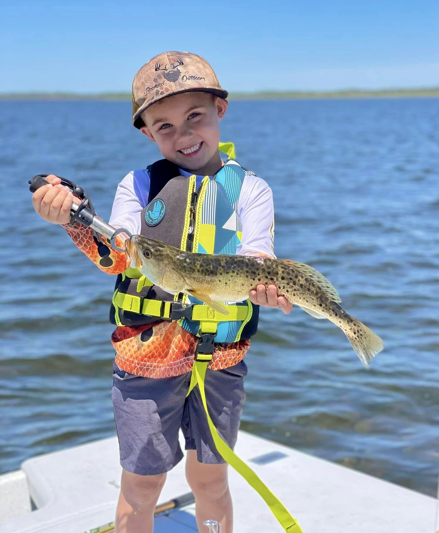 Payton caught his very first trout with Capt. Chris "Chico" Graham.