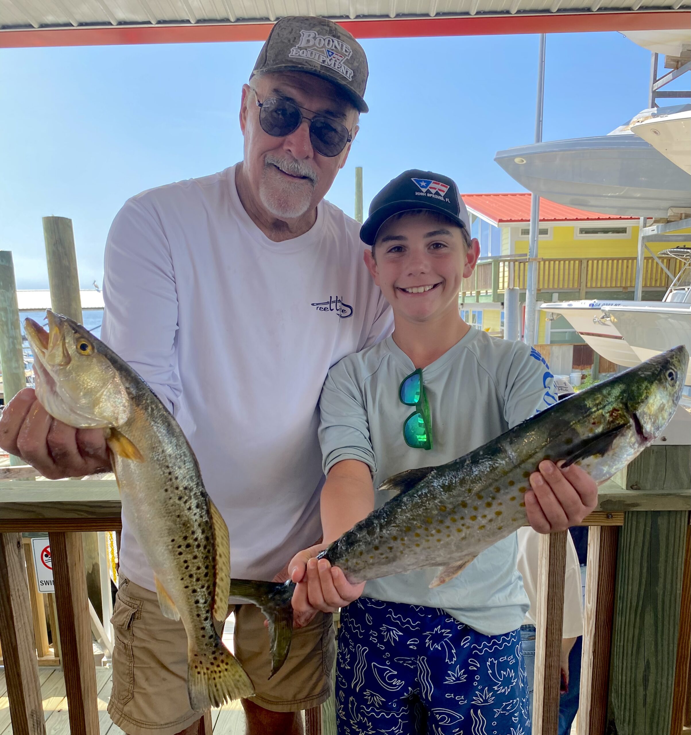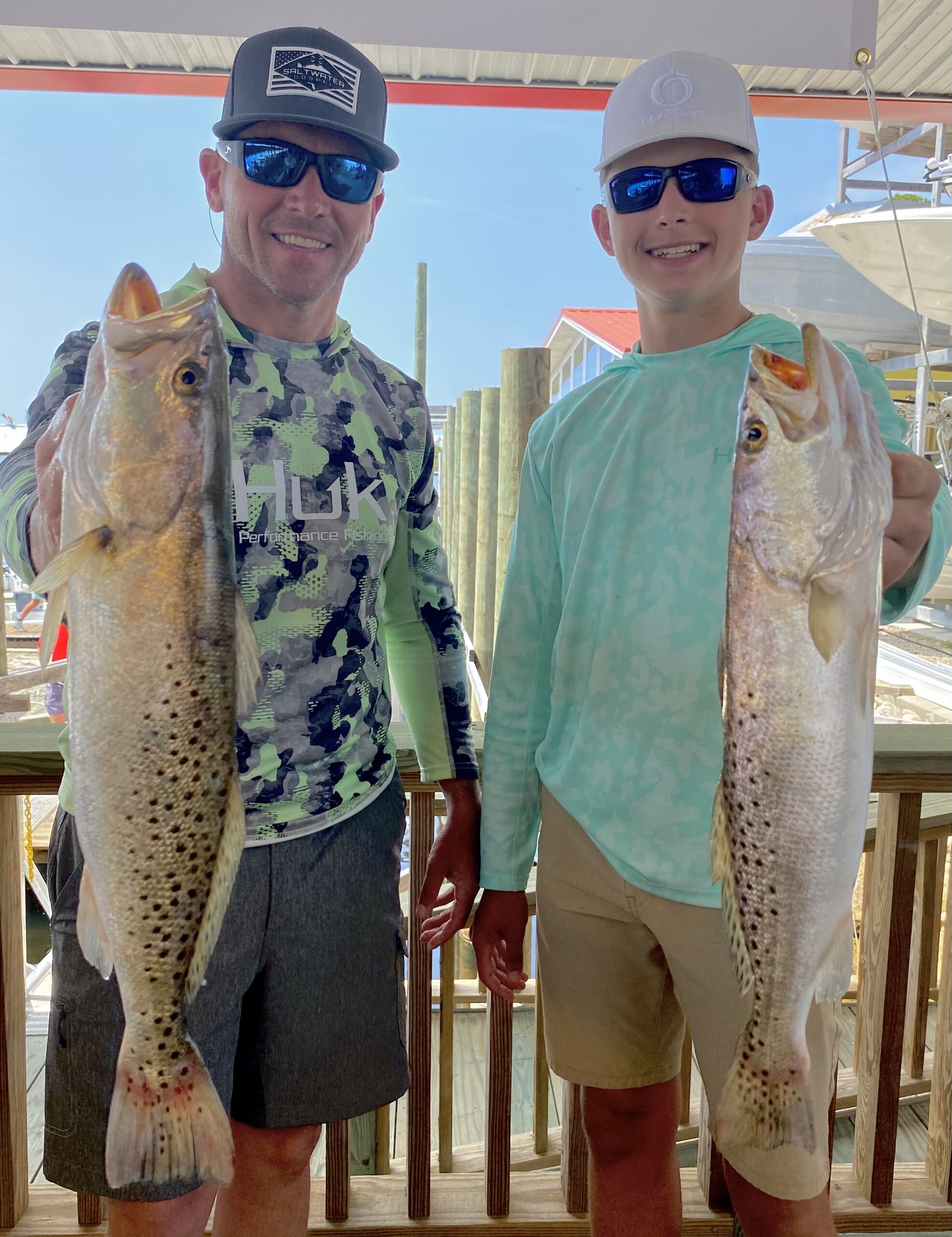 | These guys from Ohio had a great time catching trout with Capt. Tony Jackson. | Aidan & Payton had tons of fun catching redfish with Capt. Chris "Chico" Graham. | The father-son duo, Aidan & Payton, came back to the docks with some redfish & trout thanks to Capt. Chris "Chico" Graham. | |