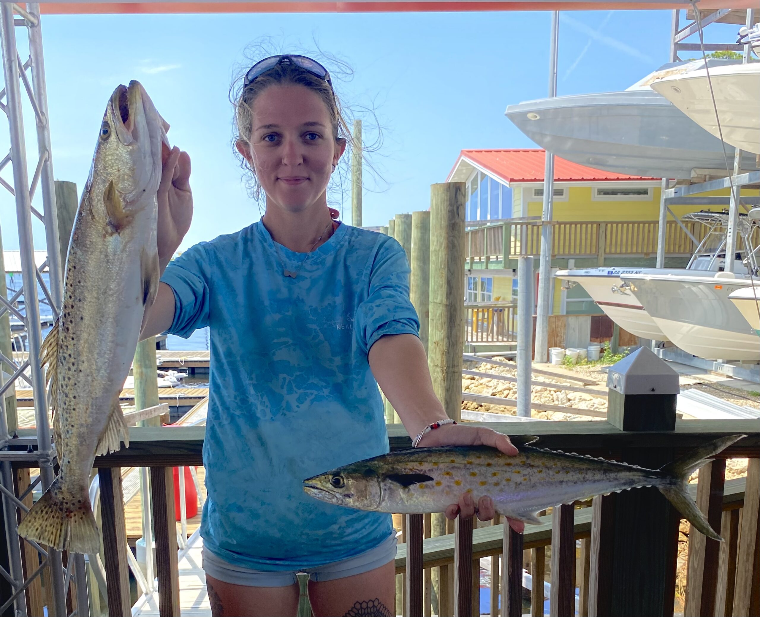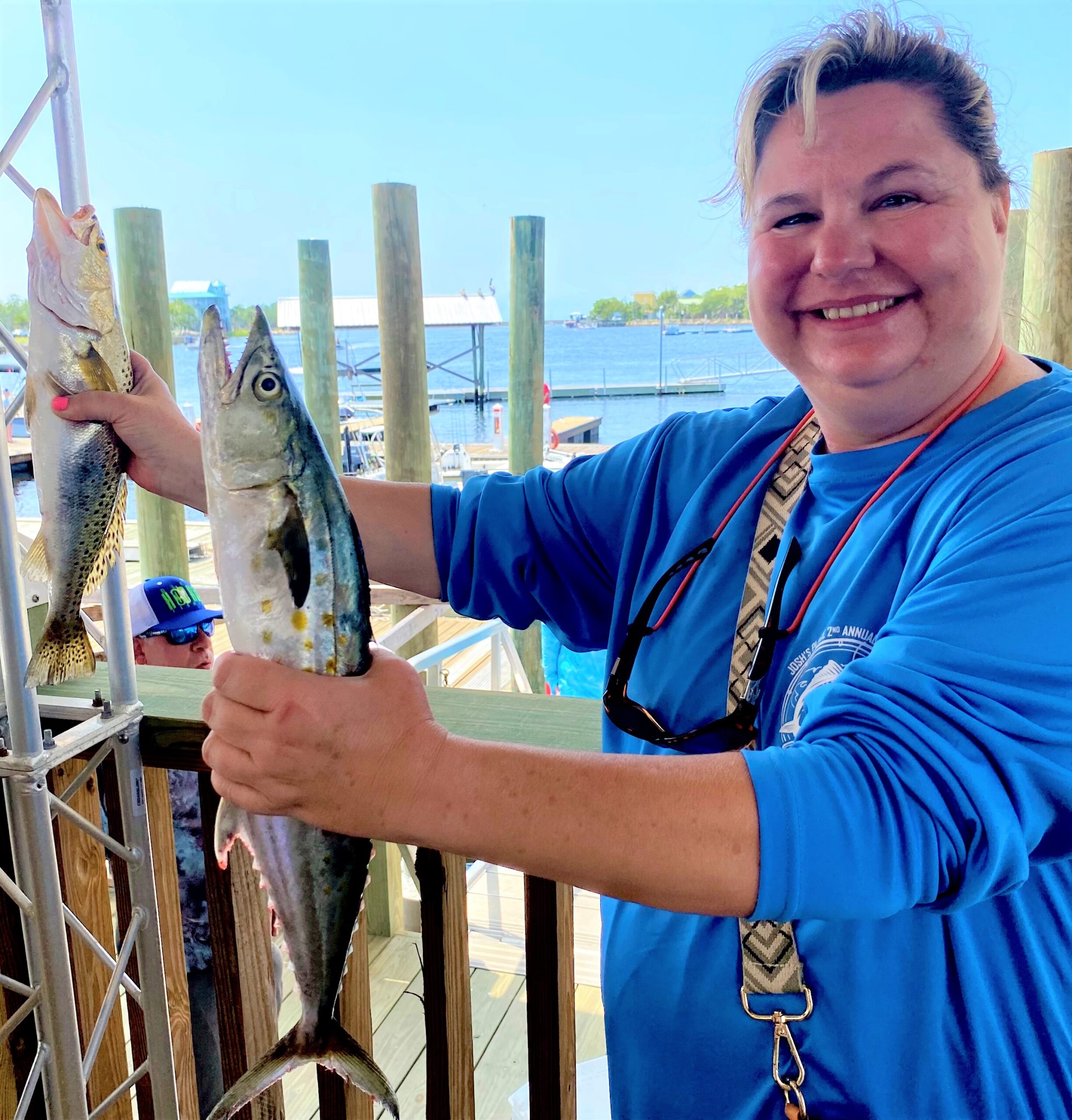 | Brandy Weston won 3rd Place trout at 3.51lbs. | Greg Hause was beat by his wife by just a few ounces. He won 2nd Place Redfish at 6.47lbs. | |