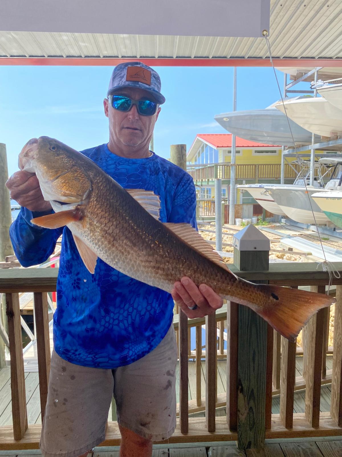 James is holding up a stud redfish he caught during his trip with Capt. Randy Harris.