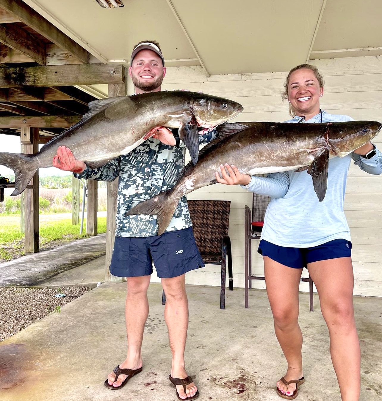 Bradley English & Skyler Hanna lifted up the twin cobia!
