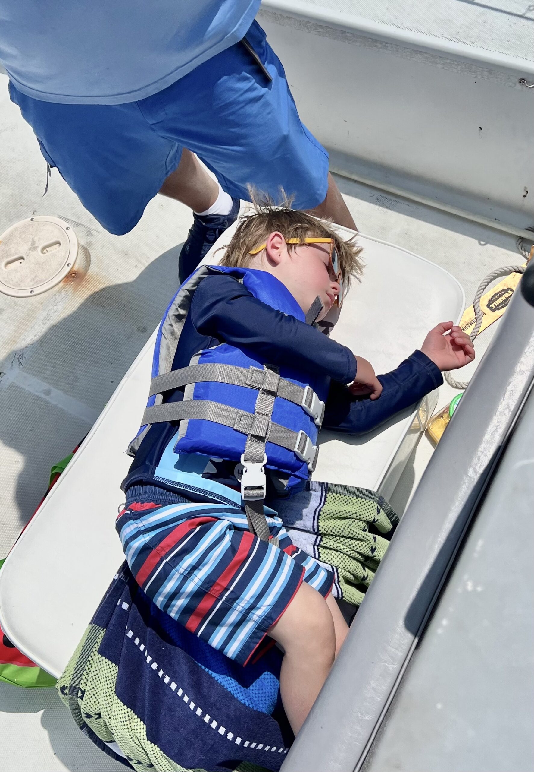 Fishing can really tire you out! Little Payton took a quick nap on the boat after catching fish with his dad and Capt. Chris "Chico" Graham.