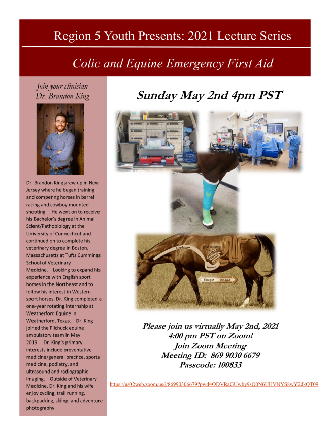 May 2nd: Understanding Colic with Dr. King from Pilchuck (Virtual) you can find the link on the Region 5 Youth Facebook page