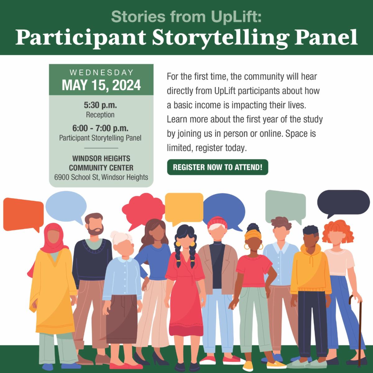For the first time the community will hear directly from UpLift participants about how a basic income is impacting their lives. Learn more about the first year of the study by joining us in person or online. Space is limited, register today. Join us in person for a reception at 5:30 PM. The panel will promptly begin at 6:00 PM and will be live streamed.