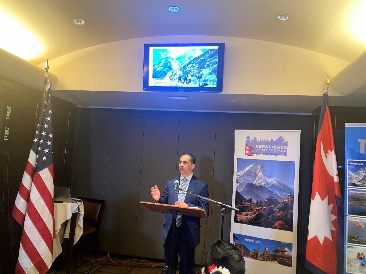 Acting Consul General Mr. Bishnu Gautam highlighted the concept of reimagination within Nepal’s tourism potential and its contribution to personal growth, community empowerment, and the recovery of the tourism business. The event, hosted in collaboration with the New York chapter of the Pacific Asia Travel Association (PATA NY) and Chhetry & Associates law firm, emphasized the power of adventure as a transformative experience.