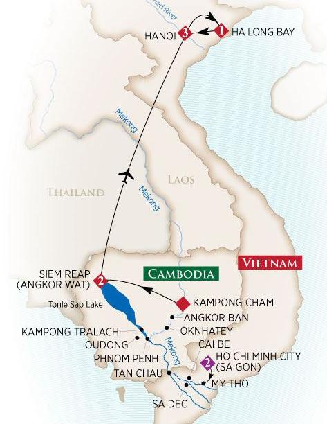 Enhance your cruise on the mighty Mekong and land tour to Angkor Wat, with a 4-day extension to Hanoi and Ha Long Bay, discovering a glimpse into another era; one where people still happily honor the timeless traditions passed down through the centuries from their ancestors.