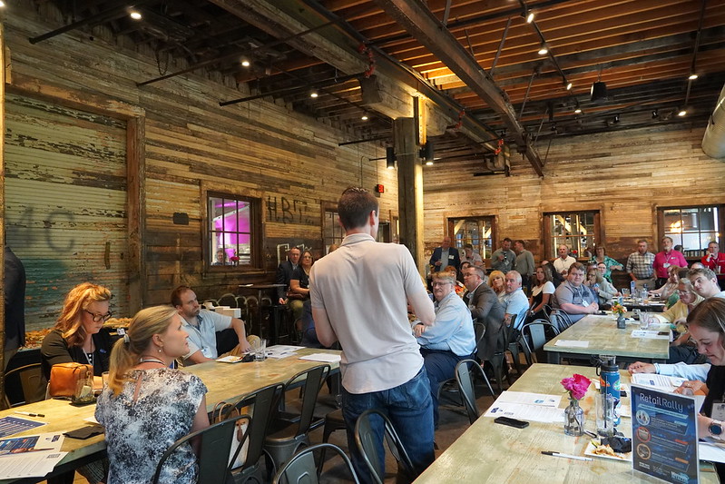 Rep. Matt Norris takes a moment to address attendees at last Wednesday's Retail+Policy Reception at The Market at Malcolm Yards. Rep. Norris--the author of Minnesota Retailers priority bill establishing a vendor collection allowance-- reaffirmed his commitment to helping retailers grow.