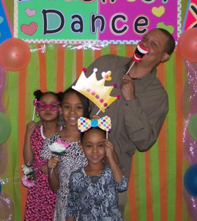 | Father David Nichols poses with daughters Aneesah, Emani, and Faith Rivera Nichols. |