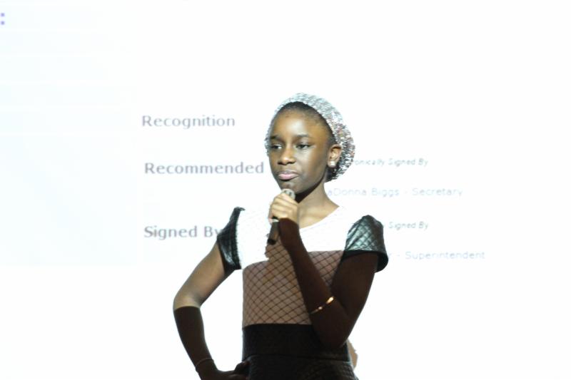 Students portrayed African Americans who have made great contributions to the American society. Maya Angelou (Ginicia Griffen), Aretha Franklin (Kyra Savage), Thurgood Marshall (Steven Randall), and President Obama (Isaiah Garrett) were all represented.