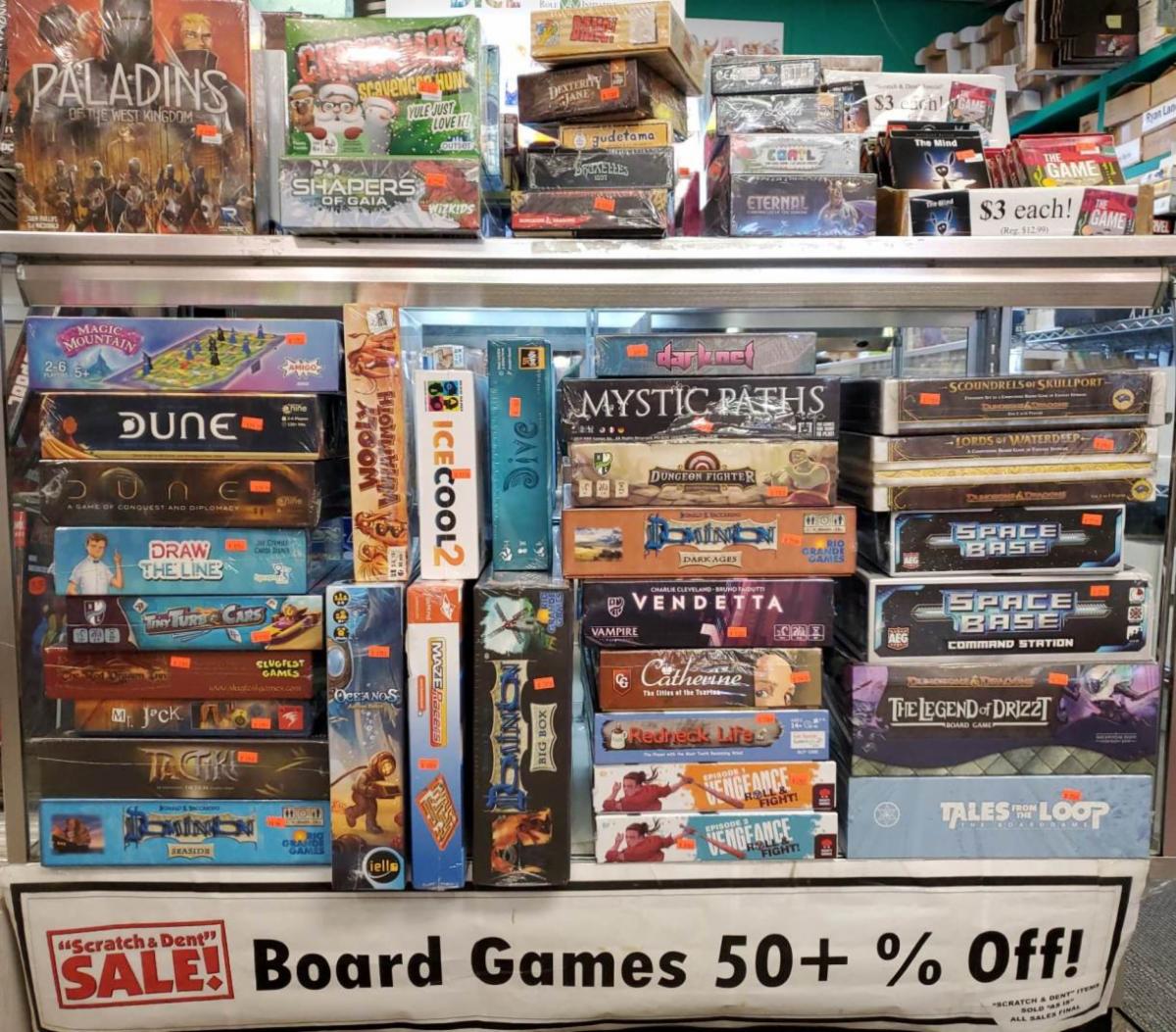 Refresh! Lots of new bargains at 50% or more discount! Dominion Big Box, Dominion Dark Ages, Lords of Waterdeep and expansion, Space Base & Command expansion, Redneck Life, Paladins of the West Kingdom, Shapes of Gaia, Sidereal Confluence, and more!