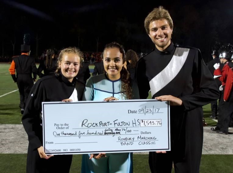 Additional funds donated after the Roxbury Classic event by individuals raised the total donation to $1,800, to be delivered to Rockport Fulton HS Bands by Roxbury Band Parents Association Treasurer, Tom Graf. Click here to read more about this event.