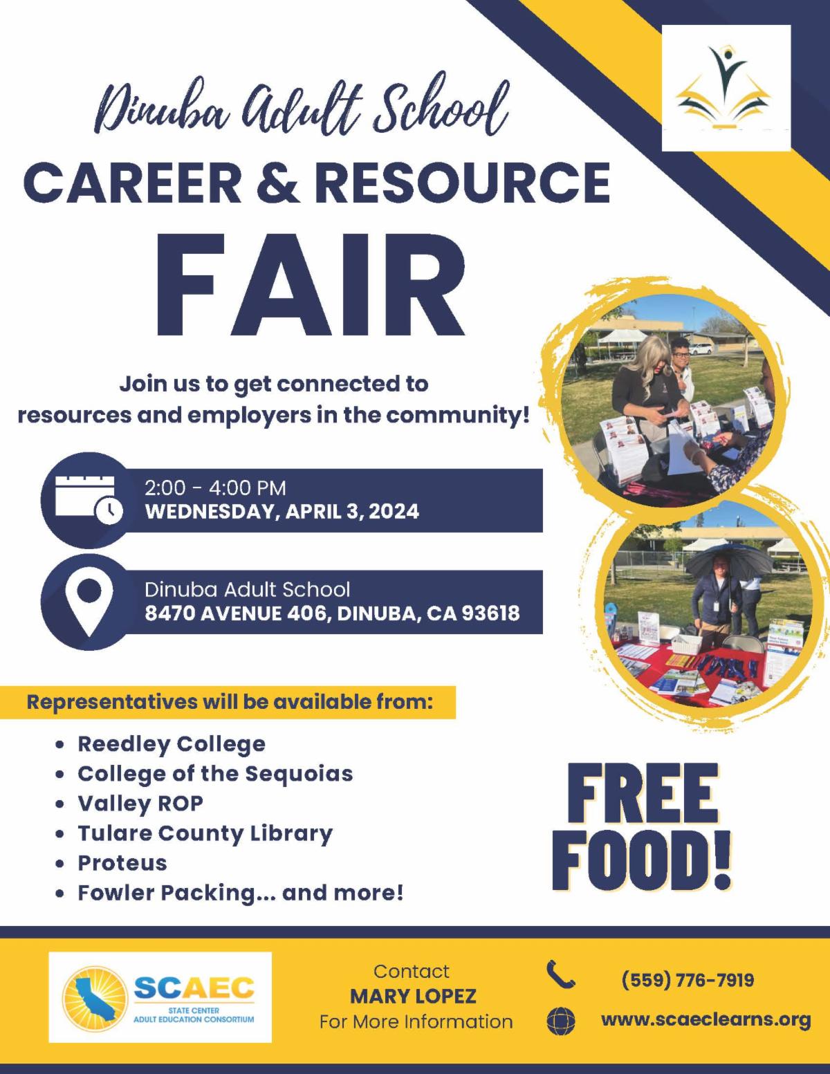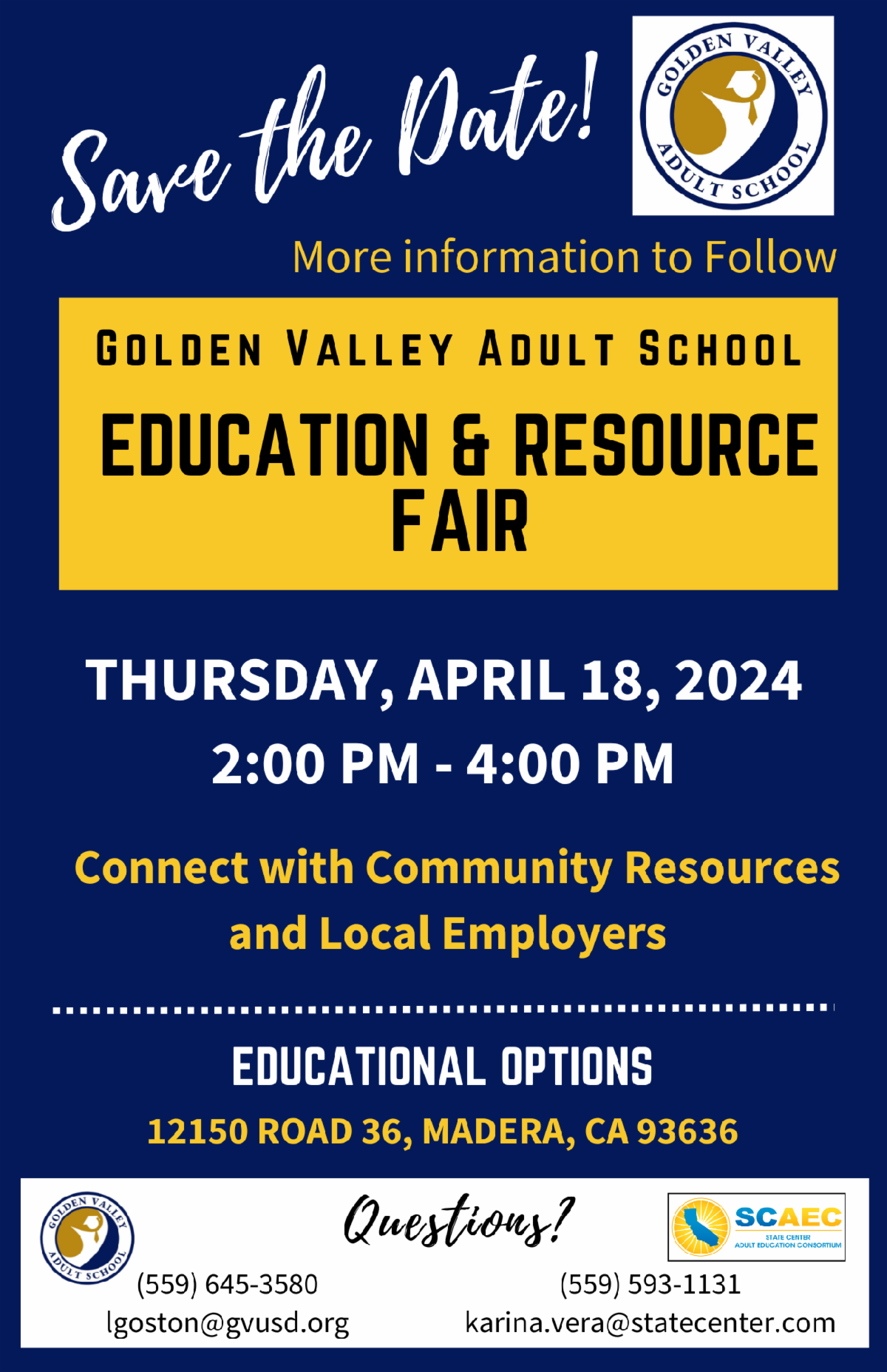 Adult education students are invited to learn more about the community resources available and meet with local employers.