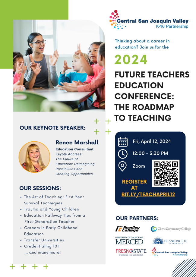 The Central San Joaquin Valley K-16 Partnership invites anyone thinking about a career in education to join them on April 12th.