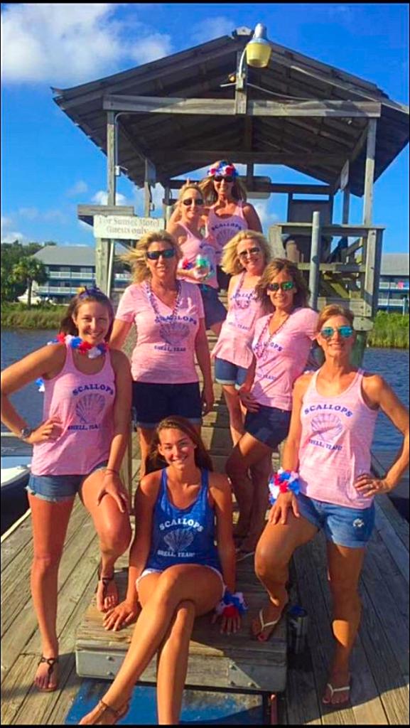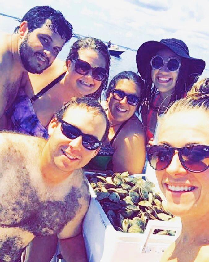 Thomas and Jacob Chaires, Ashley Bates, Amanda and Jessica Flynn, and Simone take a selfie with their scallops.