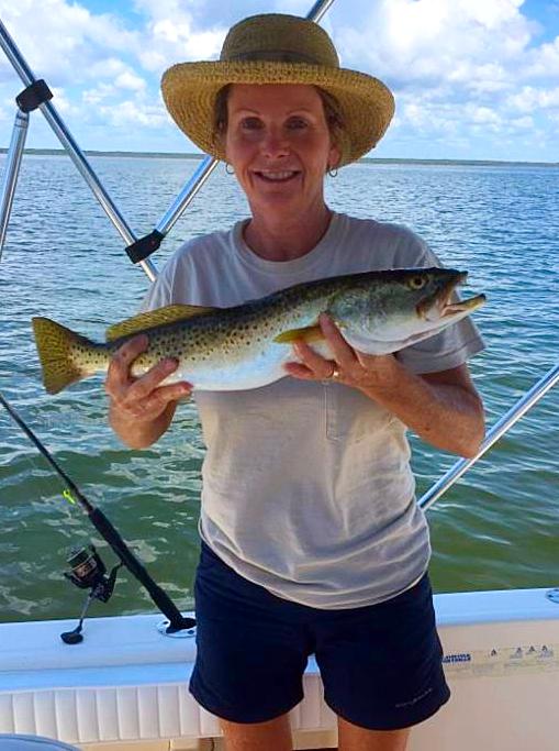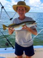Taylor Thomas caught two 18" trout on 7/23 out from the birdrack north in 4-5 feet of water on Gulp pink shad and white with chartreuse tail under a cork. The Captain, Daddy, took the pic as his 15.5" trout was not worthy of a pic. Great day on the water!