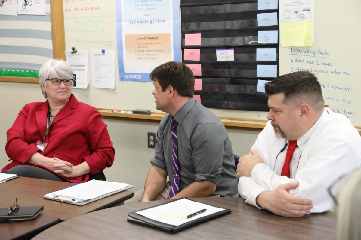 Interim Secretary Bouchey of the Vermont Agency of Education and Kendal Smith from Governor Scott’s office toured campus earlier this week with Headmaster Howell, Associate Headmaster Lenzini, and faculty member Scott Beck, who serves in the Vermont legislature as a house representative. The group also spent time with members of the school’s Special Services Department, including faculty and Assistant Director of Special Services Ty Hartshorn (center) and Mathew Forest, Director of Special Services. Secretary Bouchey is shown on the left. |