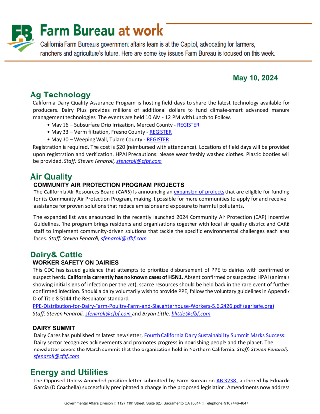 SLO County Agriculture News is distributed by SLO County Farm Bureau for information purposes only. Stories written by SLO County Farm Bureau may be reprinted with attribution. Some outside story links may require site registration. Opinions expressed in stories, commentaries or editorials included in this newsletter do not necessarily represent the views of SLO County Farm Bureau. For information on advertising opportunities, please email info@slofarmbureau.org or call our office at 805-543-3654. | | | | |