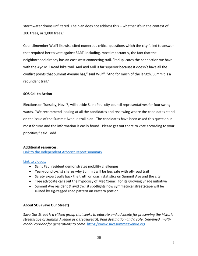 Save Our Street is a citizen group that seeks to educate and advocate for the preservation of the historic streetscape of Summit Avenue as a treasured St. Paul destination and a safe, tree-lined, multi-modal corridor for generations to come.