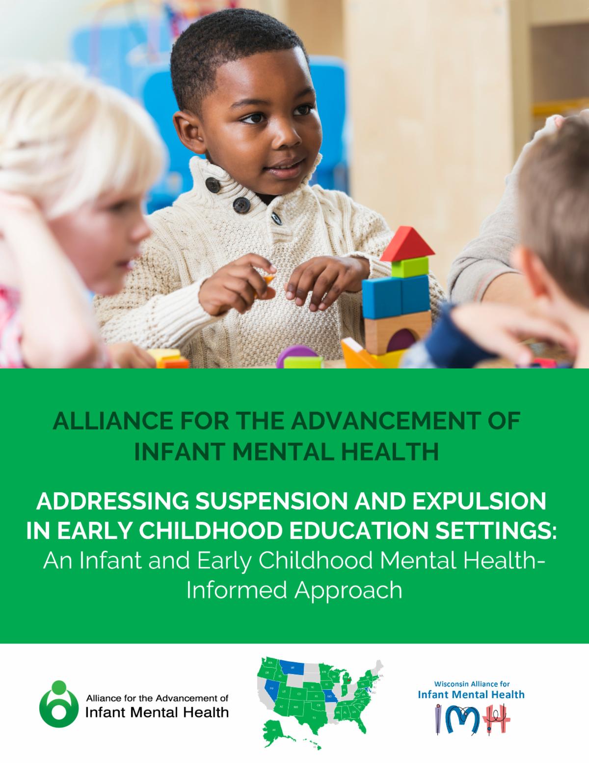 Further, it is imperative to point out this universal conclusion: An ECE workforce trained in infant and early childhood mental health is essential to ending ECE suspensions and expulsions. Systems are advised to bring their state’s association for infant mental health (AIMH) and representatives from the ECE workforce to the table to ensure infant and early childhood mental health-informed strategies and solutions.