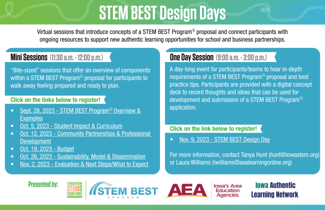 Iowa STEM is partnering with Iowa Area Education Agency (AEA) Online to provide STEM BEST Design Days.