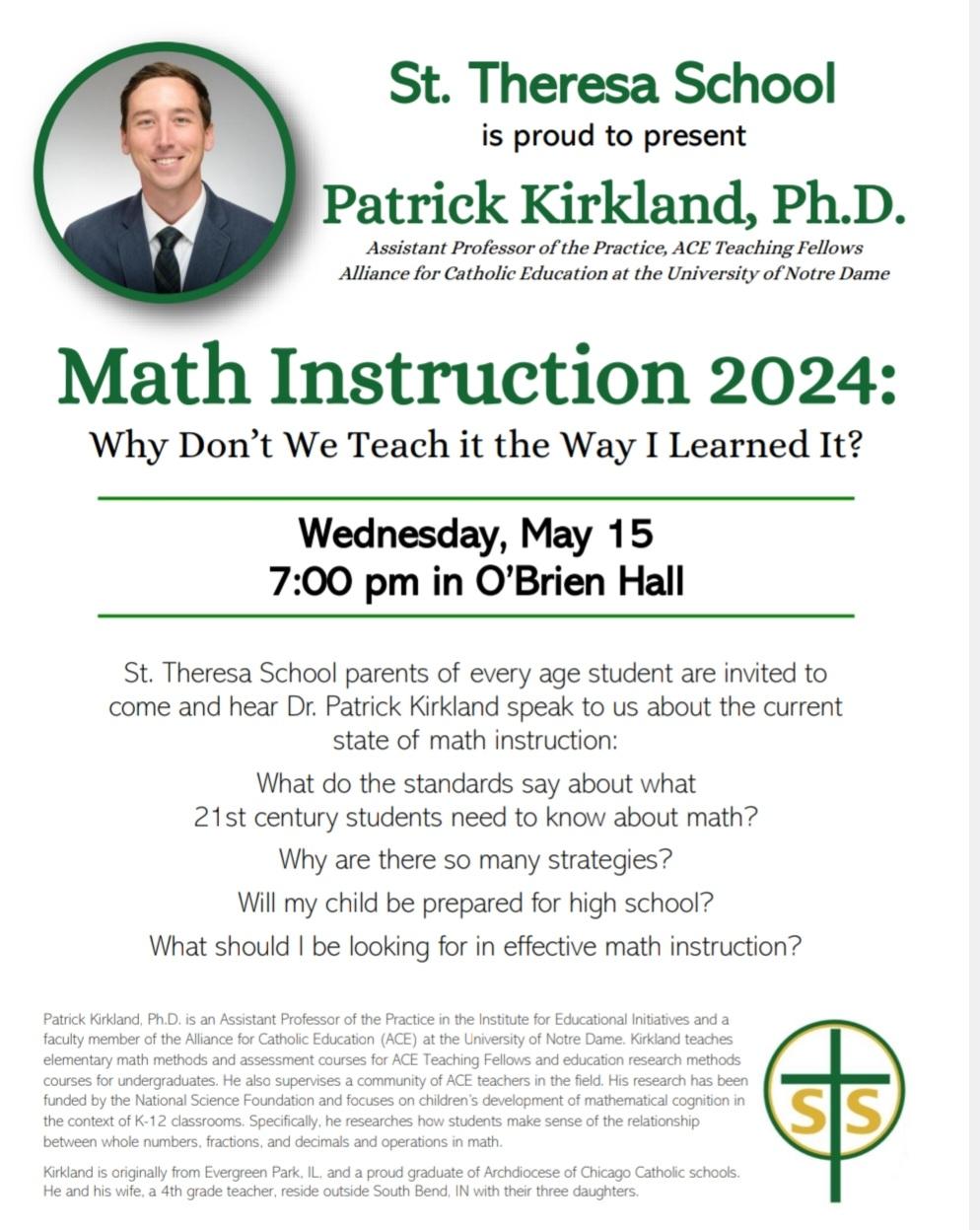 Parent Presentation - Dr. Patrick Kirkland 7:00pm-O'Brien