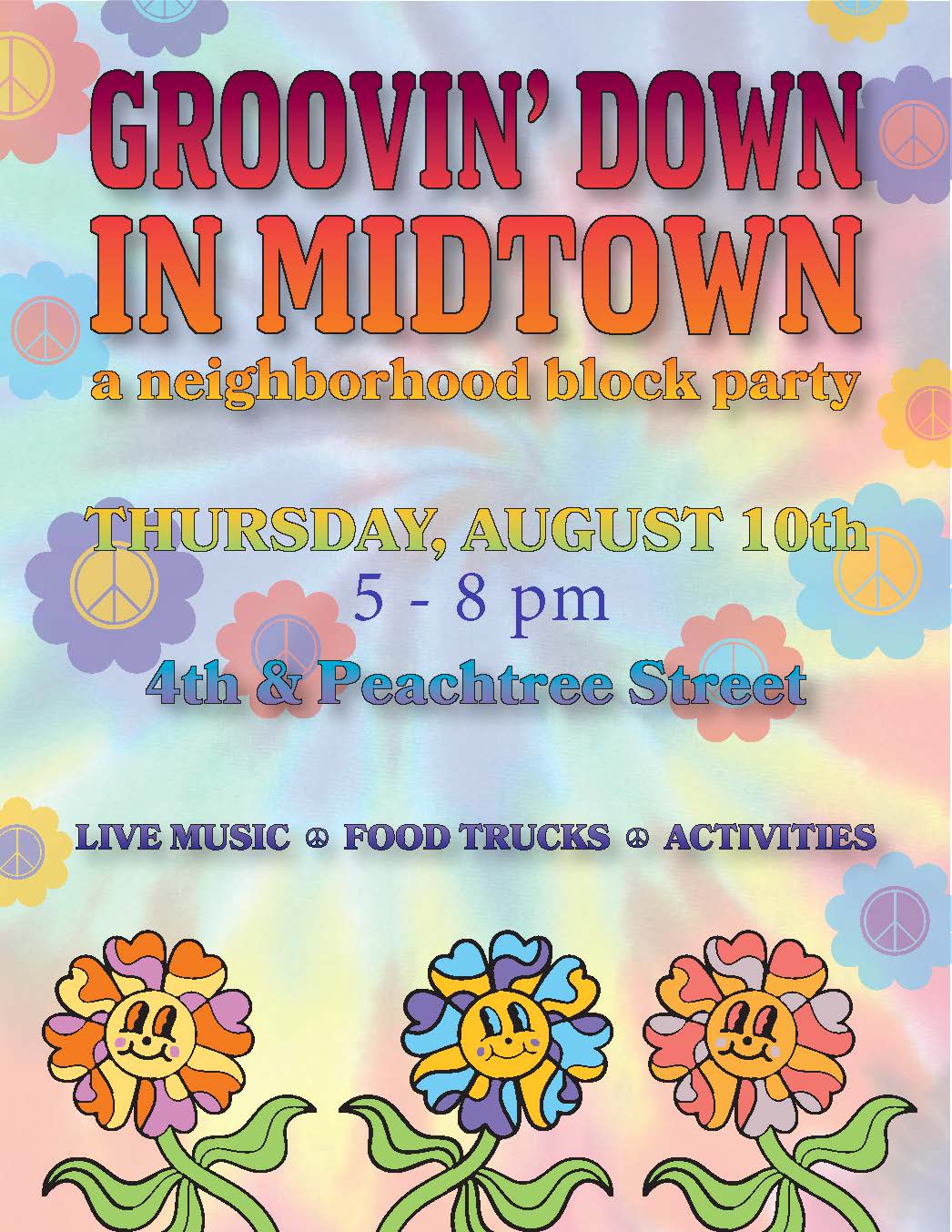 Join us for a GROOVY neighborhood block party that will recreate the 1970s on 4th Street at Peachtree!