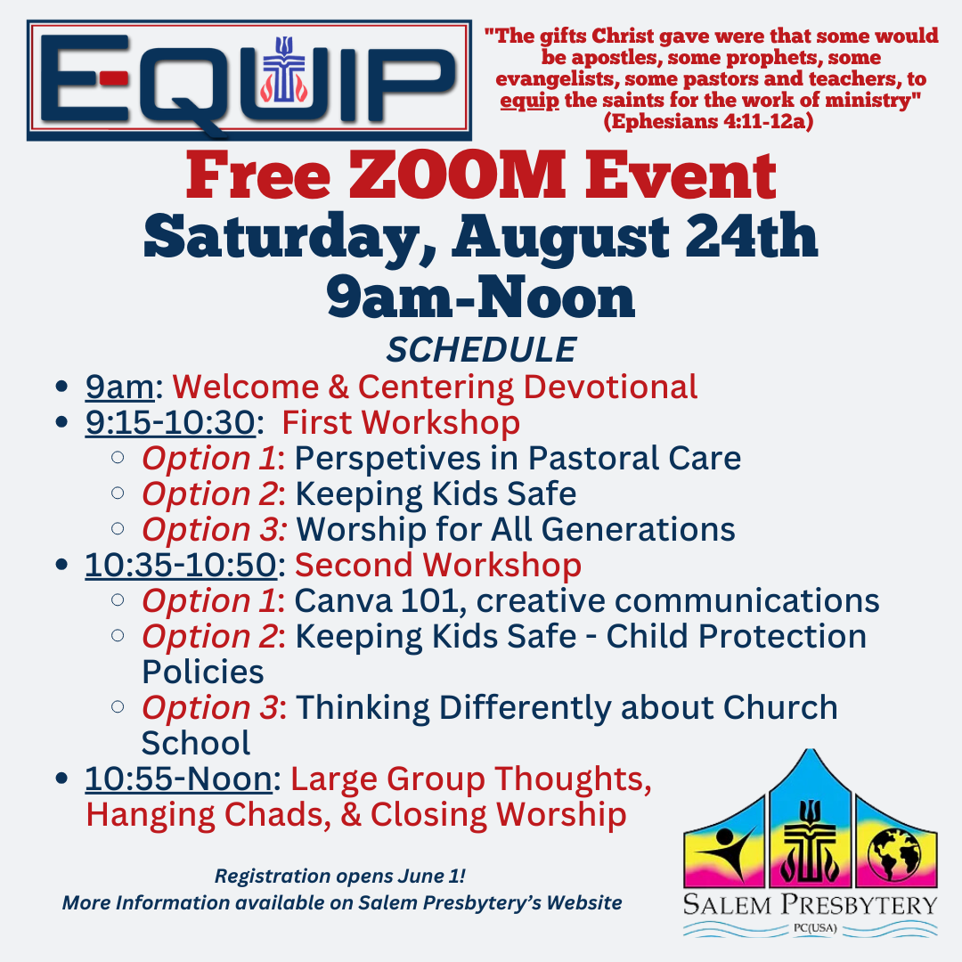 Our next equipping event will be Tuesday, October 8th from 9-3:30 at North Wilkesboro Presbyterian Church
